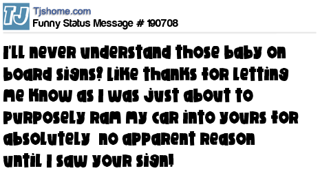 - # 107141 Baby on board* Oh really? Thanks for letting me know, I was about to ram into your car, but now I won't.