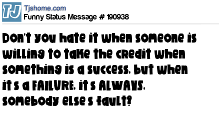 X is Don't you hate it when someone is willing to take the credit when something is a success, but when it’s a FAILURE, it’s ALWAYS, somebody else’s fault?
