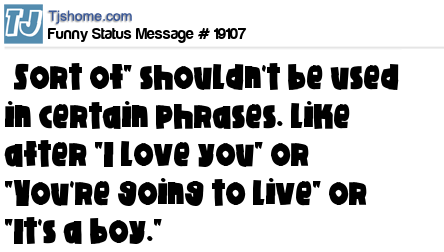 X ˜Sort of" shouldn't be used in certain phrases. Like after "I love you" or "You're going to live" or "It's a boy."