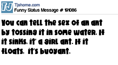 X is You can tell the sex of an ant by tossing it in some water. If it sinks, it' a girl ant. If it floats, it's buoyant.