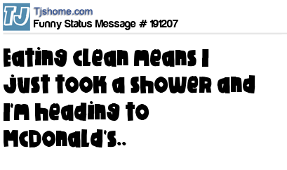 X says Eating clean means I just took a shower and I'm heading to McDonald's..