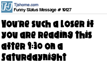 X You're such a loser if you are reading this after 9:30 on a Saturdaynight