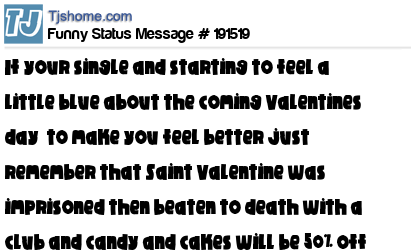 - # 191707 If youβre single and starting to feel a little sad about Valentines day just remember that Saint Valentine was beaten, thrown in prison then beheaded and all candy will be 50% off the next day.