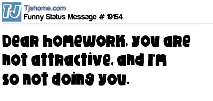 X says dear homework, you are not attractive, and I'm so not doing you.