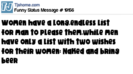 X says women have a long,endless list for man to please them,while men have only a list with two wishes for their women: Naked and bring beer