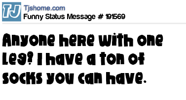 X says Anyone here with one leg? I have a ton of socks you can have.