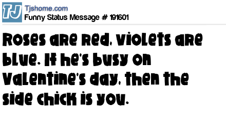 X is Roses are red, violets are blue. If he's busy on Valentine's day, then the side chick is you.