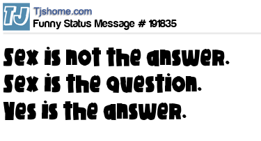 - # 11149 reminding you that Sex is not the answer. Sex is the question. "Yes" is the answer.