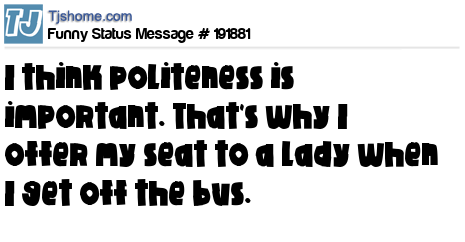 X is I think politeness is important. That's why I offer my seat to a lady when I get off the bus.