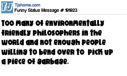 - # 203529 To many environmentally-friendly Facebook philosophers and not enough people willing to bend over to pick up a piece of garbage.