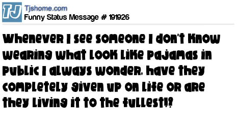 - # 208320 I don't know if people who wear pajamas in public have given up on life or are living it to the fullest.