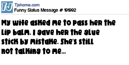 X says My wife asked me to pass her the lip balm. I gave her the glue stick by mistake. She's still not talking to me...