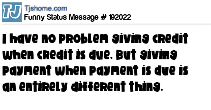 - # 15274 I have no problem giving credit where credit is due. It's giving payment where payment is due is where I struggle.
