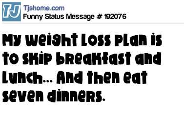 X says My weight loss plan is to skip breakfast and lunch... And then eat seven dinners.