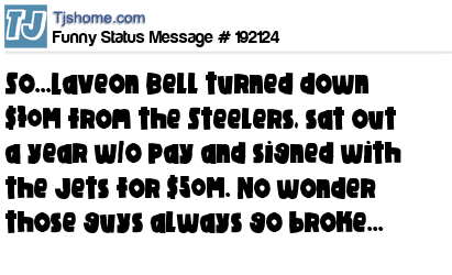 X So...Laveon Bell turned down $70M from the Steelers, sat out a year w/o pay and signed with the Jets for $50M. No wonder those guys always go broke...