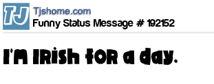 - # 50268 Happy St Patrick's Day, the day when everybody gets together and pretends they're Irish. Except the Irish -- they pretend they're sober.
