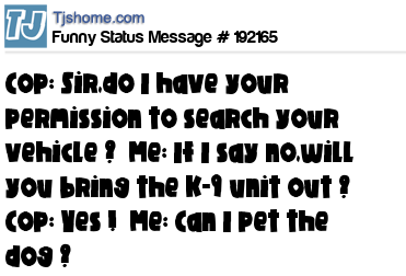 X says Cop: Sir,do I have your permission to search your vehicle ?  Me: If I say no,will you bring the K-9 unit out ?  Cop: Yes !  Me: Can I pet the dog ?