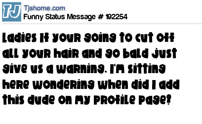 X says Ladies If your going to cut off all your hair and go bald just give us a warning. I'm sitting here wondering when did I add this dude on my profile page?