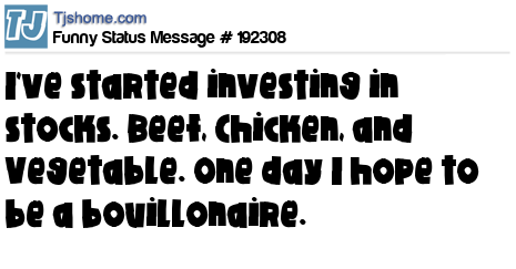 X says I've started investing in stocks. Beef, Chicken, and Vegetable. One day I hope to be a bouillonaire.