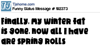 X says Finally, my winter fat is gone, now all I have are spring rolls