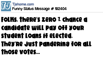 X Folks, there's zero % chance a candidate will pay off your student loans if elected. They're just pandering for all those votes...