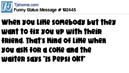 - # 177685 When you like someone but they want you to meet their friend, it's kind of like when you ask for a Coke and the waiter says "Is Pepsi OK?"