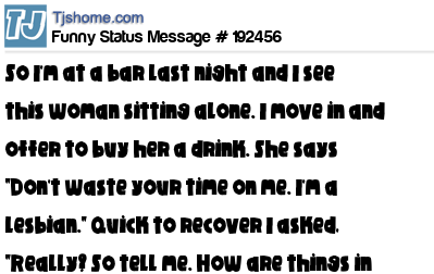 X says So I'm at a bar last night and I see this woman sitting alone. I move in and offer to buy her a drink. She says "Don't waste your time on me. I'm a lesbian." Quick to recover I asked, "Really? So tell me. How are things in Beirut?"