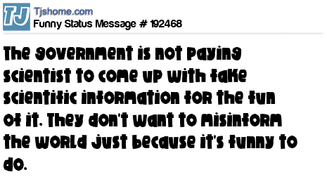 X is The government is not paying scientist to come up with fake scientific information for the fun of it. They don't want to misinform the world just because it's funny to do.