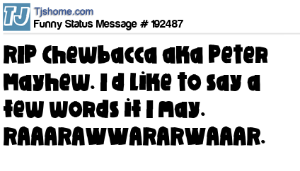 X says RIP Chewbacca aka Peter Mayhew. I’d like to say a few words if I may. RAAARAWWARARWAAAR.