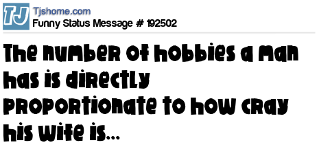 X The number of hobbies a man has is directly proportionate to how cray his wife is...