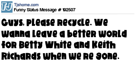 X says Guys, please recycle. We wanna leave a better world for Betty White and Keith Richards when we’re gone.