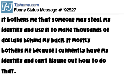 - # 64856 It bothers me that someone may steal my identity and use it to make thousands of dollars behind my back. It bothers me because I currently have my identity and can't figure out how to do that.."