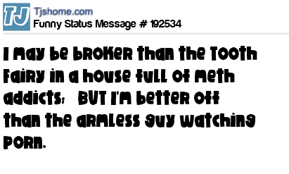 X says I may be broker than the Tooth Fairy in a house full of meth addicts; BUT I'm better off than the armless guy watching porn.