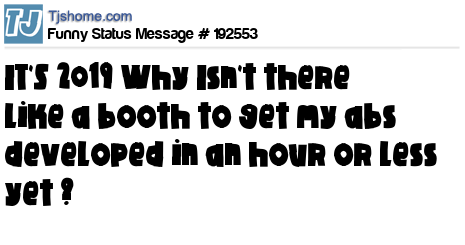 X says IT'S 2019 Why Isn't there like a booth to get my abs developed in an hour or less yet ?