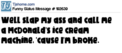X says Well slap my ass and call me a McDonald's ice cream machine, 'cause I'm broke.