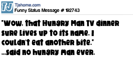 X says "Wow, that Hungry Man TV dinner sure lives up to its name. I couldn't eat another bite." ...said no hungry man ever.