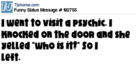 X is I went to visit a psychic. I knocked on the door and she yelled "who is it?" So I left.