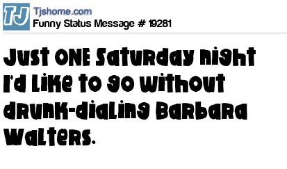 X Just ONE Saturday night I'd like to go without drunk-dialing Barbara Walters.