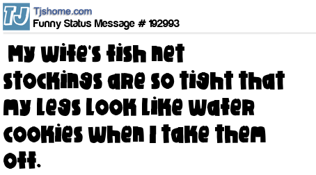 - # 195886 My wife's fish net stockings are so tight that my legs look like wafer cookies when I take them off.