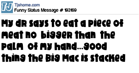 X says my dr says to eat a piece of meat no bigger than the palm of my hand...good thing the Big Mac is stacked