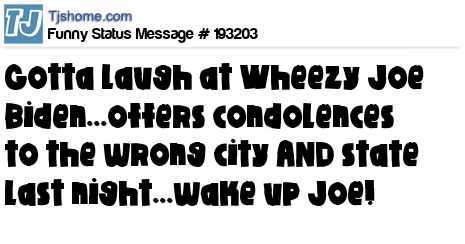 X is Gotta laugh at Wheezy Joe Biden...offers condolences to the wrong city AND state last night...wake up Joe!