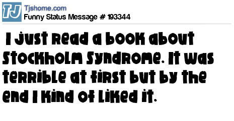 X says I just read a book about Stockholm Syndrome. It was terrible at first but by the end I kind of liked it.