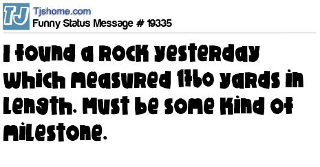X I found a rock yesterday which measured 1760 yards in length. Must be some kind of milestone.