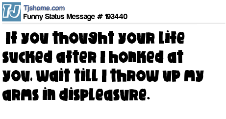 - # 177565 If you thought your life sucked after I honked at you, wait till I throw up my arms in displeasure.