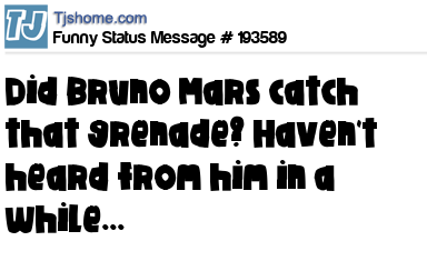 X says Did Bruno Mars catch that grenade? Haven't heard from him in a while...