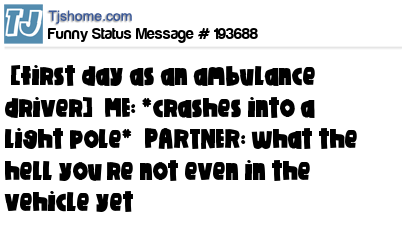 X says [first day as an ambulance driver] ME: *crashes into a light pole* PARTNER: what the hell you’re not even in the vehicle yet