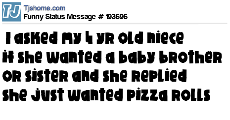 X says I asked my 4 yr old niece if she wanted a baby brother or sister and she replied she just wanted pizza rolls