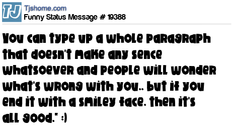 X is you can type up a whole paragraph that doesn't make any sence whatsoever and people will wonder what's wrong with you.. but if you end it with a smiley face. then it's all good." :)