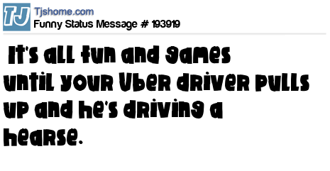 X says It's all fun and games until your Uber driver pulls up and he's driving a hearse.