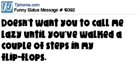 - # 20870 doesn't want you to call me lazy until you've walked a couple of steps in my flip-flops.
